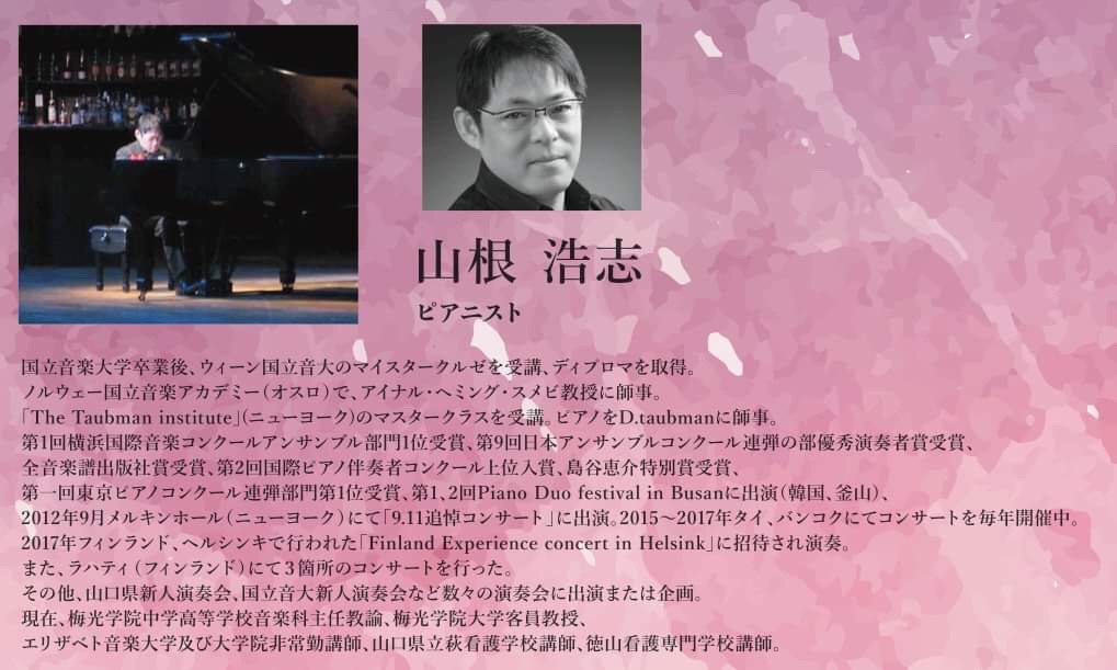 これまで中高(音楽科、普通科),大学(保育科、幼児教育科、音楽科)、音大(ピアノ科)での豊富な経験と長年の演奏活動の実績があり、県内外、国内外で演奏活動、レッスンなどを精力的に行っています。